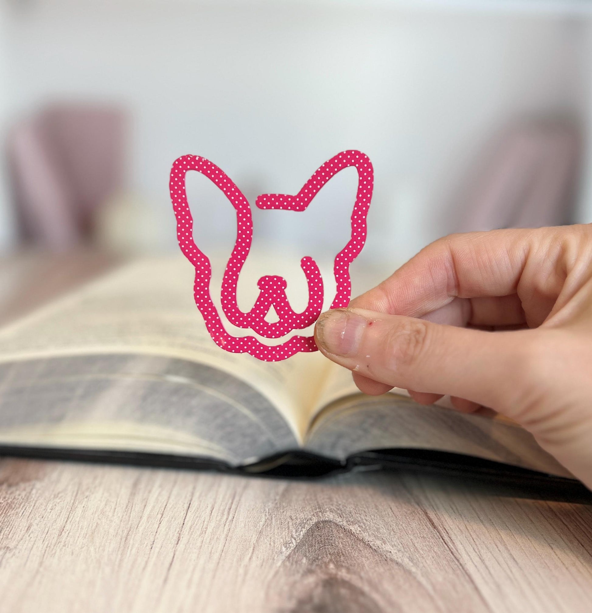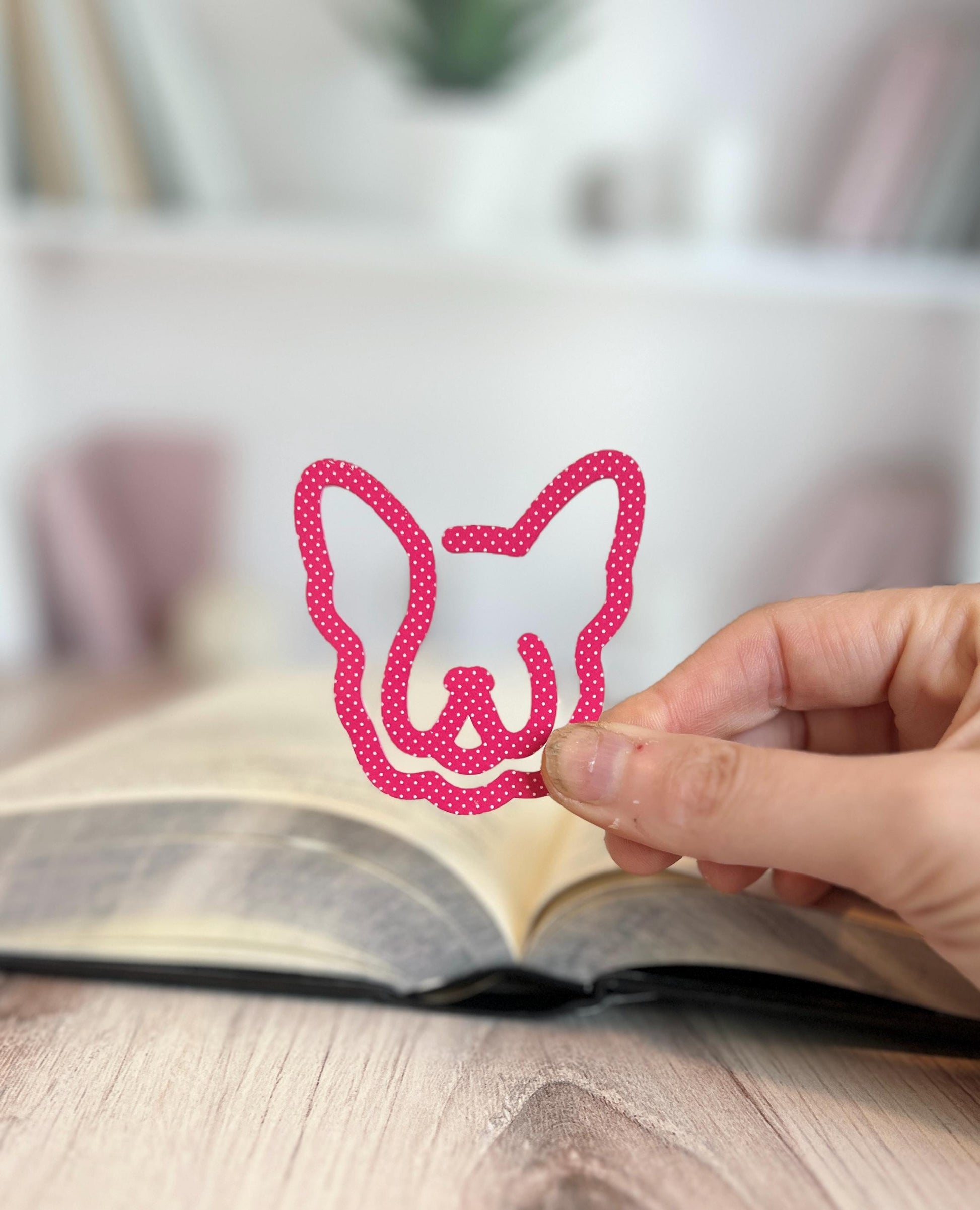 Made from durable acrylic and available in a variety of fun polka dot colors (see listing photos), this paw-some bookmark features a sweet silhouette of a French Bulldog.